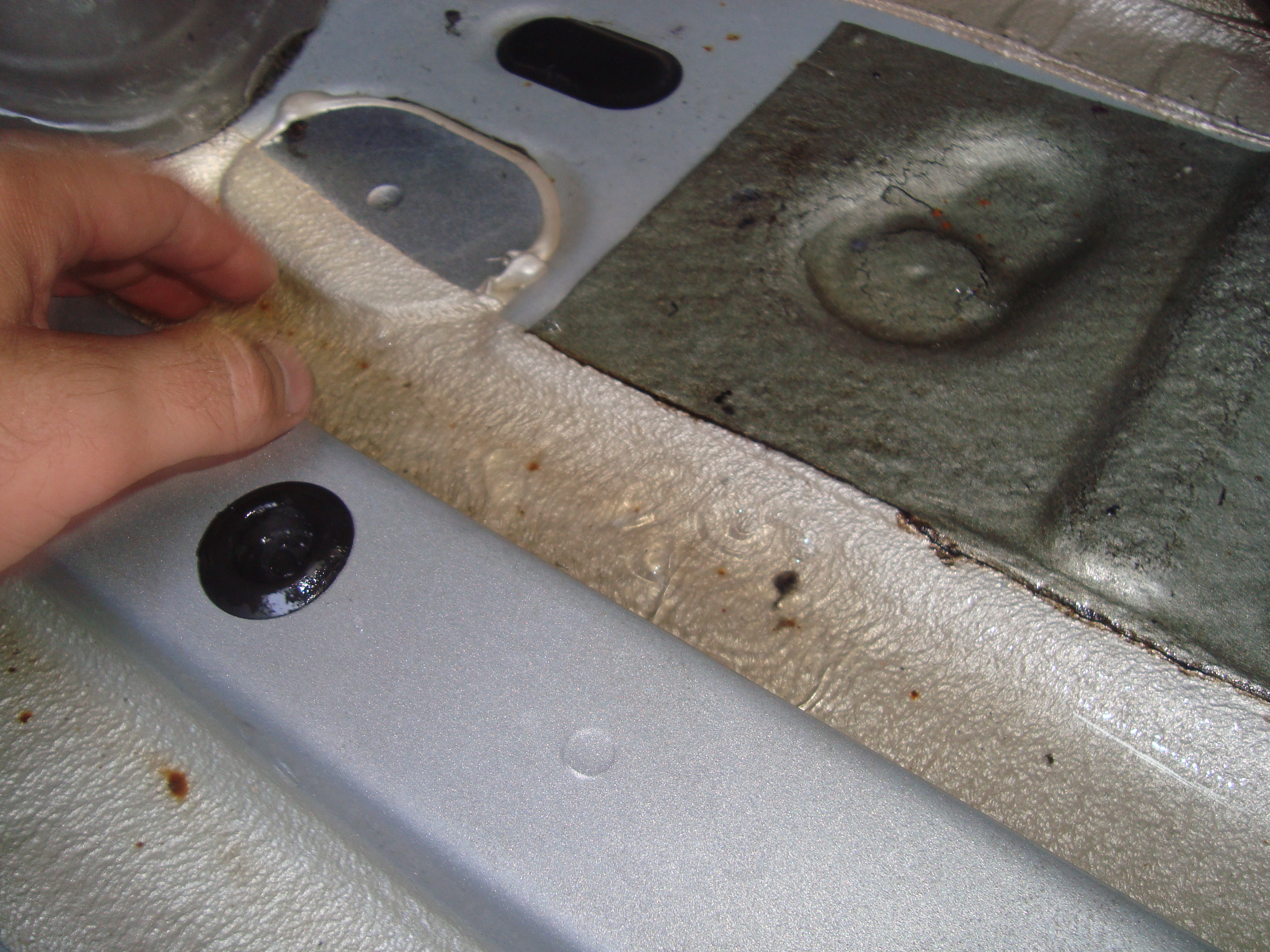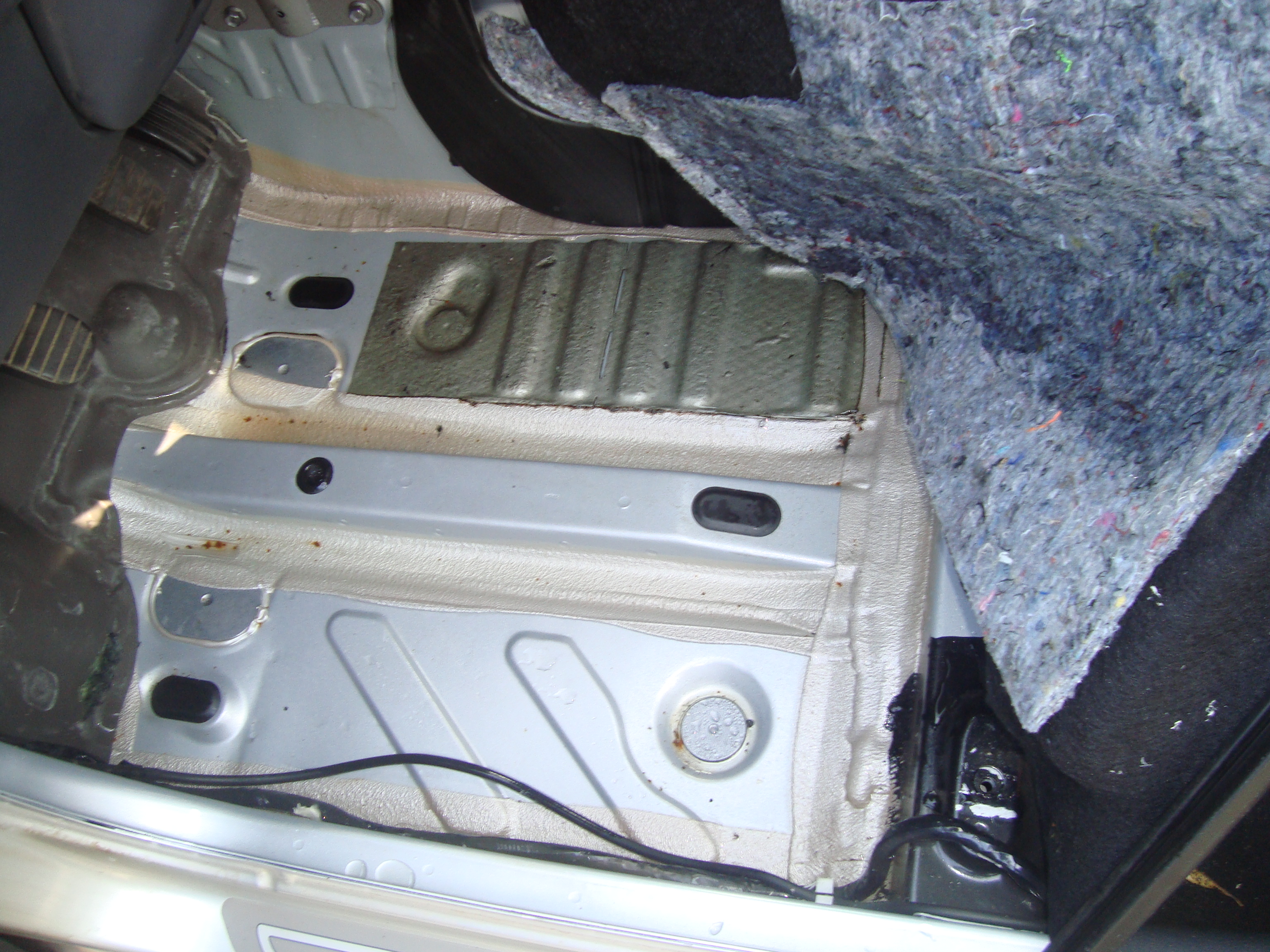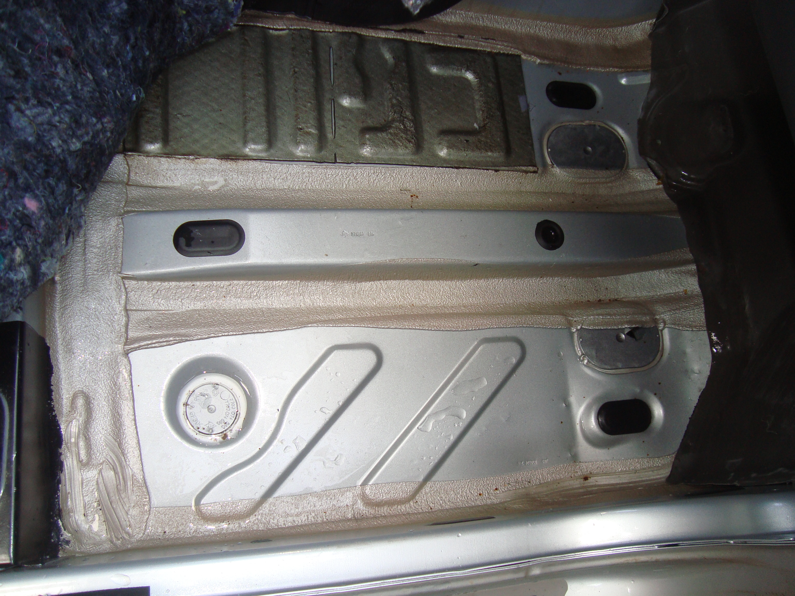 первые два фото - пассажирское место, вторая пара - "мое". Когда вытащил шумку с пассажирского места - то был шокирован - там в днище есть пластмассовая заглушка в днище - СКВОЗНАЯ ДЫРА!! Такое чувство - как будто снизу кто-то отверткой саданул!! Весь оставшийся вечер просушивал - запах не уходит!!!
