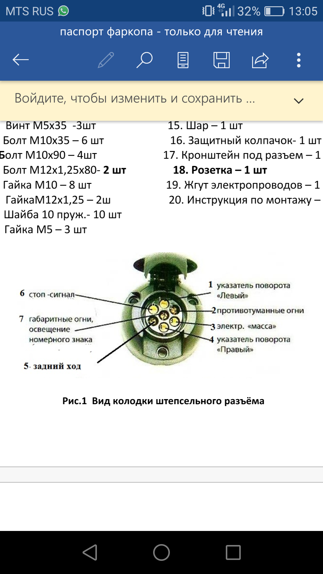 Фаркоп евродеталь. Изучив несколько видео, решил устанавливать сам в гараже на яме. Начал в 12.00. (зима). У меня установлено ГБО. Штатные заглушки нашел быстро и плоской отвёрткой быстро снял. С обратной стороны пробил крестовой отвёрткой. Начал установку. Единственное что пришлось снять - термозащиту глушителя. Остальное пошло быстро. Сначала все навесил, наживил. Потом все протянул. Потом начал проводить проводку. Ничего не сверлил. Все в штатные отверстия.Вот тут пришлось несколько раз переделывать, по моей невнимательности.А в общем ничего сложного нет. Проводку правда устанавливал не из комплекта, а брал дополнительную в Ларгус шопе, она чуток получше. Провода подсоединял на скрутку. Закончил работу в 17.00.