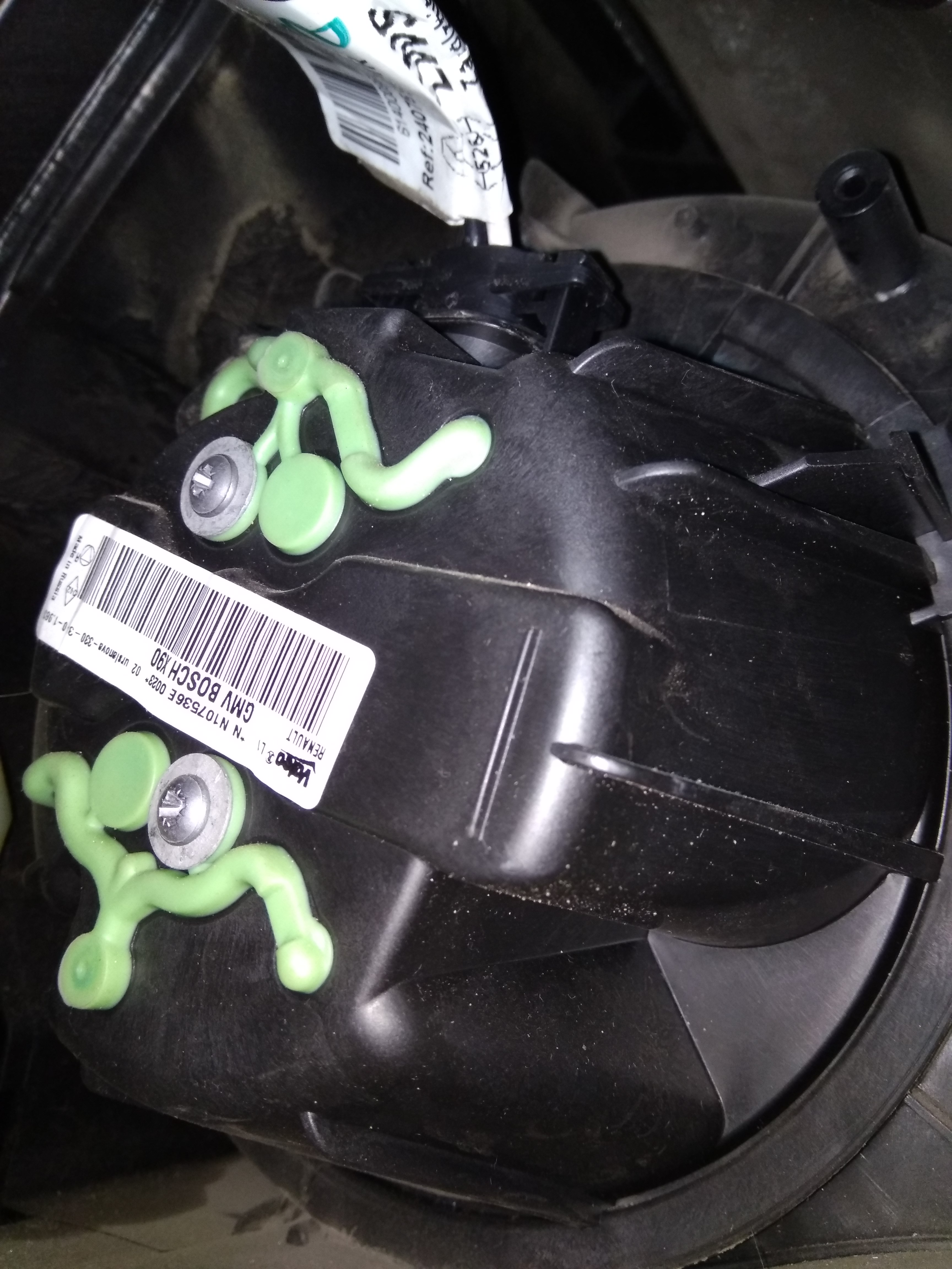 Замена рэле толку не дало. Сделал себе индикатор из лампочки на 12 вольт и стал проверять всю цепочку. Дошёл до регулятора скорости вентилятора, с его напряжение подаётся, но до двигателя не доходит. Осталось проверить разъём в торпеде над бордачком и сам двигатель. Замечено, что после удара по торпеде со стороны пассажира мотор запускается. Разъём на двигателе пошевелил, но снять пока не смог. Может быть кто знает код на вентилятор? У меня стоит BOSCH, у него разъём отличается от тех двигателей, которые в продаже есть. | ||||||||