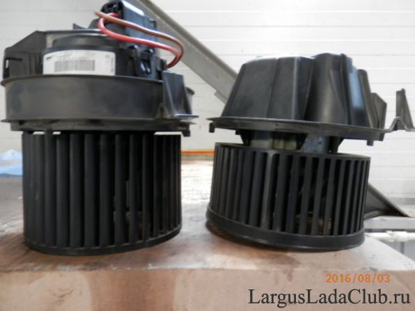 У ларгуса два отопителя, с фильтром и без, соответственно два разных вентилятора, различных только размером крыльчатки и разъемом.