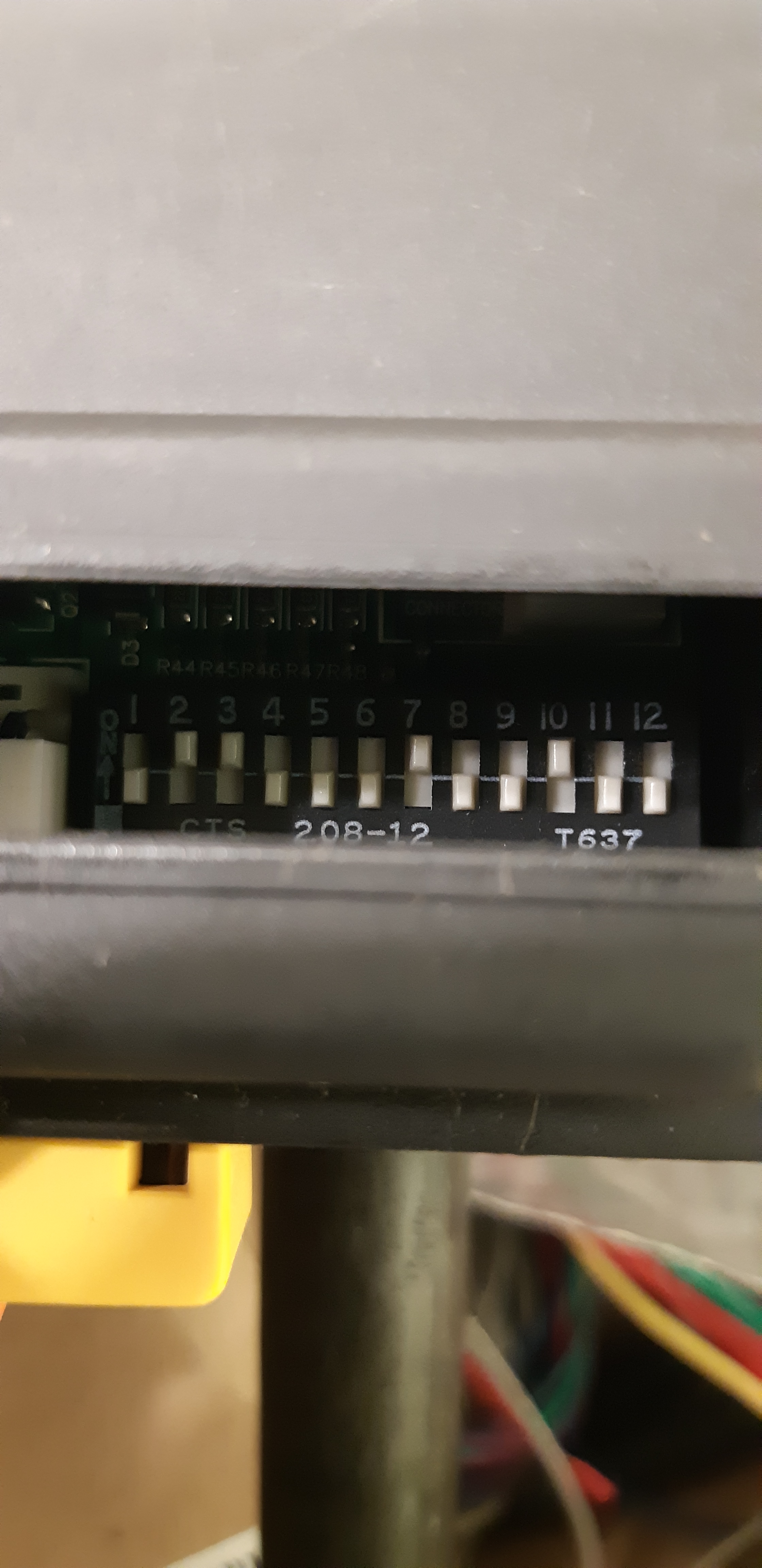 Двеннадцать переключателей для настройки под конкретный авто. Сейчас у меня настроен как на фото, но с чувствительностью ещё поэксперементирую, т.е. первые два поменяют позиции.