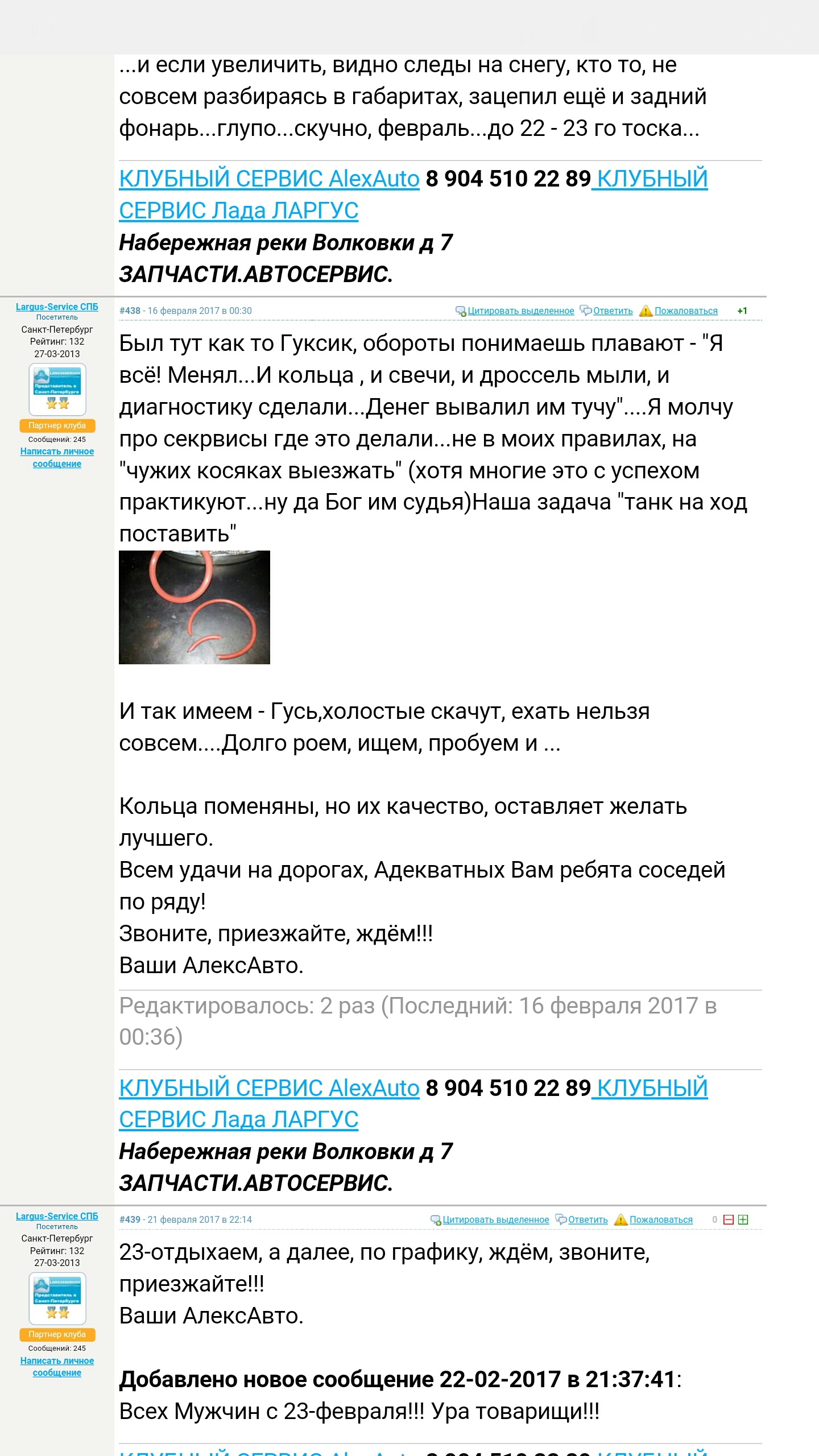 Alex39, Деньги выкинутые на ветер - посмотрите в теме Ларгус Сервис Спб, что с этим дерьмом именуемом кольцами стало! Это меня угораздило такие поставить, с моей машины кольца, спасибо ребята разобрались и нашли причину, да и запчасти в наличии были, а то еле до них доехал! | ||||||