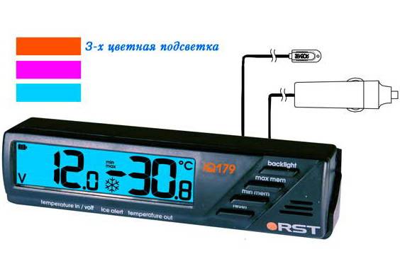 Диапазон измерения температуры вне помещения: -50 °С – +70 °С Диапазон измерения температуры в салоне/помещении: 0 °С – +50 °С Разрешение: 0,1 °С Длина провода термосенсора: 3 метра Питание: 2 алкалиновые батарейки типа ААА Габаритные размеры: 30 х 145 мм | ||||