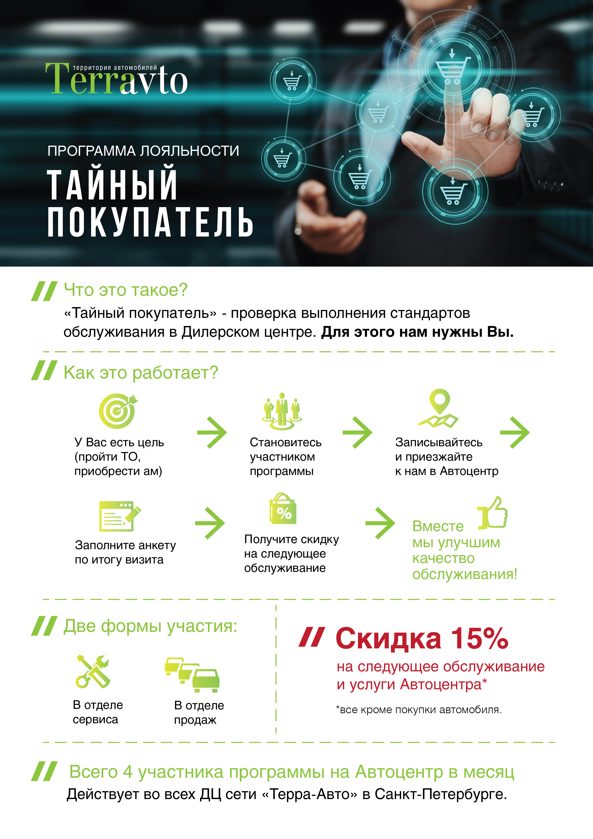 Денис Колпино, добрый день. Прошу прощения за долгий ответ. Скидки и подарки зависят от условий покупки и комплектации автомобиля, в том числе от кредита и страхования. Поэтому конечно же скидки есть, но более целесообразно их обсуждать при личном общении с менеджером. Скидки по картам предоставляются, к сожалению, только на сервисное обслуживание. Насколько я помню, Ваш клуб не сотрудничал с Лада-Центр Купчино в плане договоренностей о скидках по клубным картам... Вместо карты нашей сети у нас введена программа лояльности - Прагматика Бонус, где за каждый потраченный рубль Вы получаете баллы в подарок, которые Вы можете использовать при обслуживании - подробнее о бонусной программе http://www.pragmaticarbonus.ru Также у Вас есть возможность стать участником партнерской программы "Тайный покупатель" и получить скидку 15% на услуги автоцентров нашей сети (кроме покупки автомобиля) Добавлено новое сообщение 08-02-2018 в 15:21:02: В продолжение темы Лада-Центр Купчино. Группа Компаний Терра-Авто провела ребрендинг и с 1 февраля 2018 года стала называться ПРАГМАТИКОЙ. В связи с чем Наши Автоцентры также изменили свое название, и Лада-Центр Купчино стал официально называться Прагматика Купчино. Также в Прагматика Купчино до 16.02.2018 будет действовать интересное предложение по обслуживанию! Не пропустите. "Только до 16 февраля в ПРАГМАТИКА КУПЧИНО -«Счастливые будни»! В понедельник, вторник и среду - скидка на ТО – 23%! 🔥🔥 Подробности и запись у мастеров и администраторов сервиса по телефону ☎ 640-95-81!" ![]() Прикрепленные файлы: