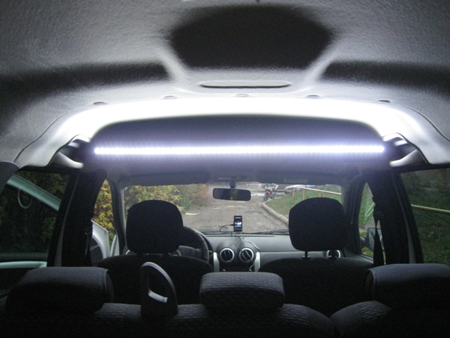 Вчера сотворил дополнительную подсветку салона из светодиодной ленты. Один отрезок 95см. прилепил на верхнюю багажную полку(над задними сиденьями нет фонаря) и 2 отрезка по 40см. на низ торпедо над ногами. Подключился от центрального плафона. Там как раз в разъеме два контакта свободные. Постоянный + и минус с реле задержки выключения. Отрезал от домашнего системника(нет у нас магазинов по иномаркам) незадействованные одинарные разъемы(мамки), вытащил оттуда клеммы с куском провода. Все это вставил в родной разъем плафона. Подключился "культурно". Проводку пропустил в "кембриках" под правой передней накладкой стойки и по правому краю крыши до накладки верхней ручки(в ней отверстие просверлил для выхода проводки). Все работает нормально, в штатном режиме. Дверь открыл- подсветка включилась, закрыл- через некоторое время гаснет. Центральный плафон внутри оклеил зеркальной пленкой, свет от лампочки стал отражаться намного лучше. Вот как это выглядит. Как это выглядит в деле http://www.youtube.com/watch?v=xSVGGhhR5YU Так это выглядит в делеhttp://www.youtube.com/watch?v=xSVGGhhR5YU Прикрепленные файлы: